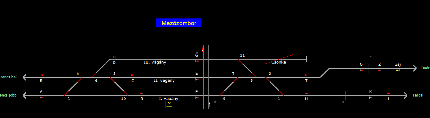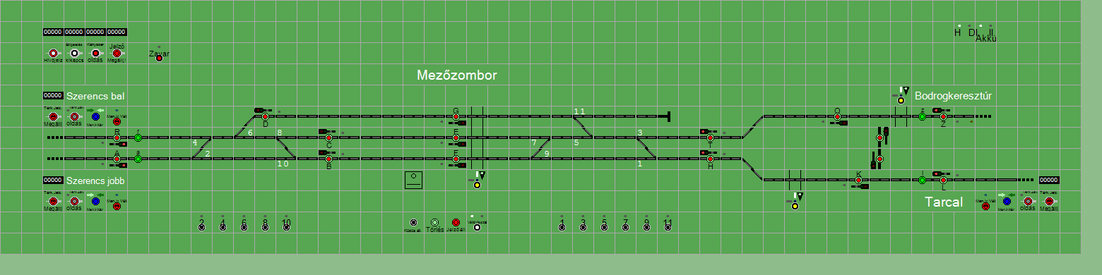| Biztosító- és jelzőberendezések: | Kép letöltése A TerVez2 Vasútforgalmi Szimulátorban megvalósított állomások eltéréseket mutathatnak a valós állomáshoz képest. |