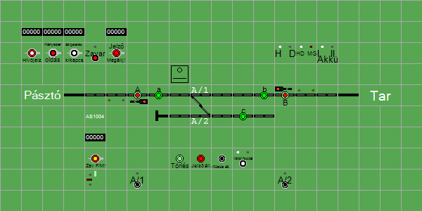 | Biztosító- és jelzőberendezések: | Kép letöltése A TerVez2 Vasútforgalmi Szimulátorban megvalósított állomások eltéréseket mutathatnak a valós állomáshoz képest. |