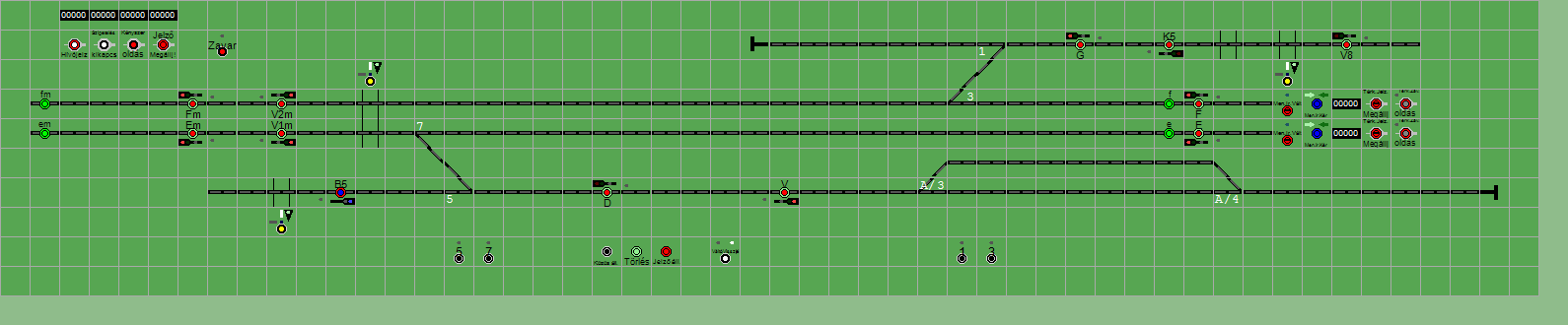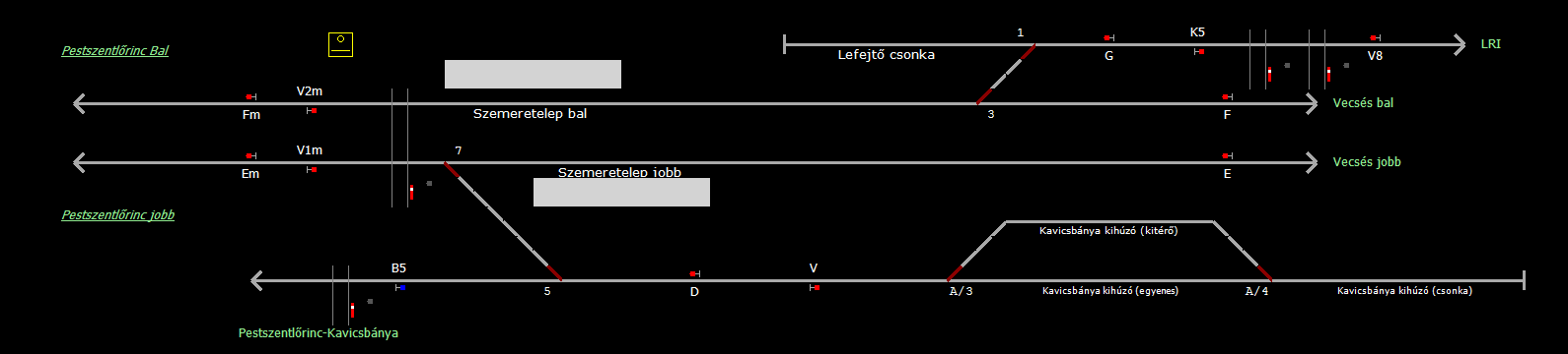 | Biztosító- és jelzőberendezések: | Kép letöltése A TerVez2 Vasútforgalmi Szimulátorban megvalósított állomások eltéréseket mutathatnak a valós állomáshoz képest. |