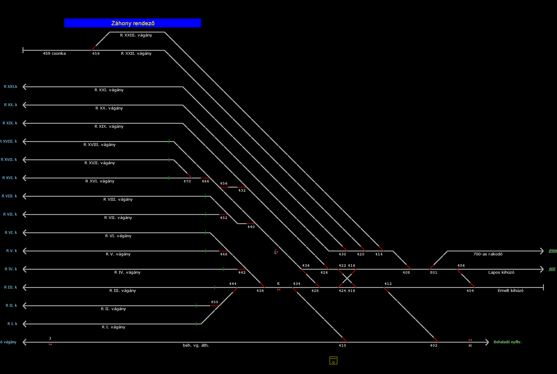 | Biztosító- és jelzőberendezések: | Kép letöltése A TerVez2 Vasútforgalmi Szimulátorban megvalósított állomások eltéréseket mutathatnak a valós állomáshoz képest. |