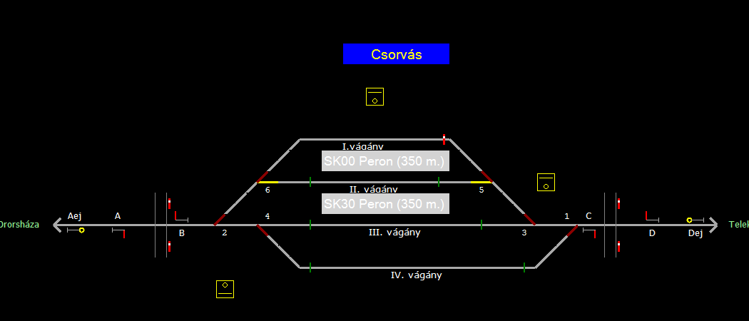 | Helyszínrajzok: | Kép letöltése A TerVez2 Vasútforgalmi Szimulátorban megvalósított állomások eltéréseket mutathatnak a valós állomáshoz képest. |