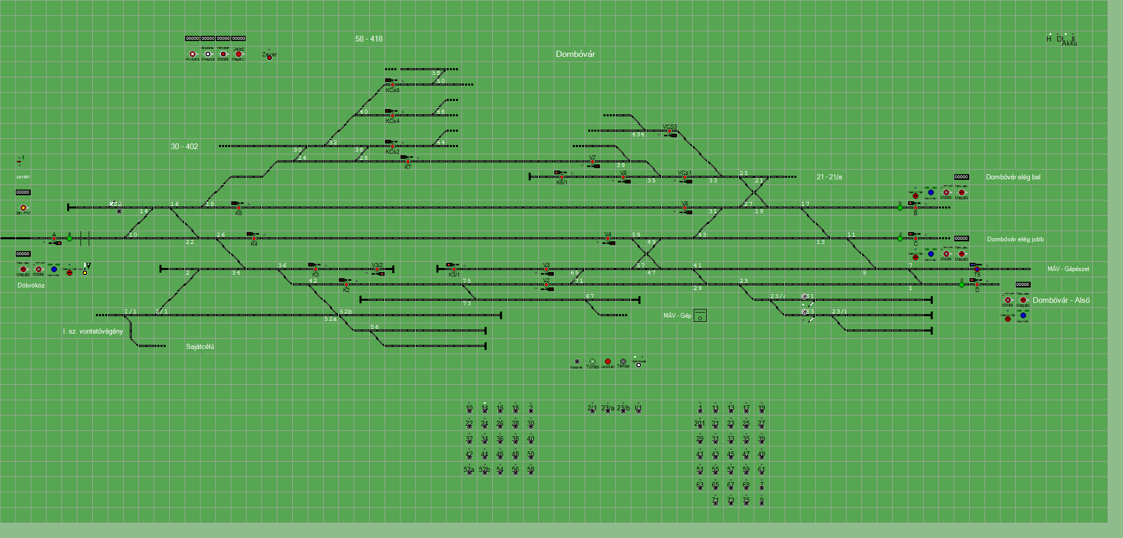 | Biztosító- és jelzőberendezések: | Kép letöltése Kép letöltése A TerVez2 Vasútforgalmi Szimulátorban megvalósított állomások eltéréseket mutathatnak a valós állomáshoz képest. |