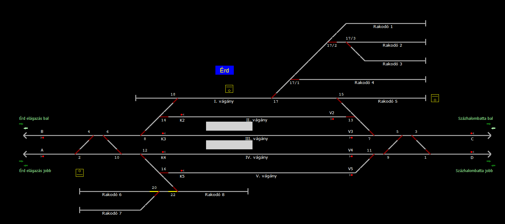 | Biztosító- és jelzőberendezések: | Kép letöltése Kép letöltése Kép letöltése Kép letöltése Kép letöltése Kép letöltése Kép letöltése Kép letöltése Kép letöltése Kép letöltése A TerVez2 Vasútforgalmi Szimulátorban megvalósított állomások eltéréseket mutathatnak a valós állomáshoz képest. |