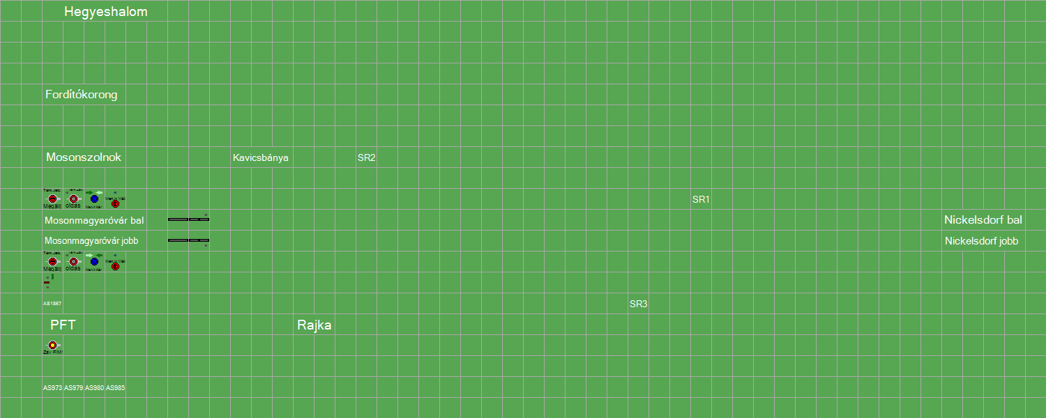 | Biztosító- és jelzőberendezések: | Kép letöltése A TerVez2 Vasútforgalmi Szimulátorban megvalósított állomások eltéréseket mutathatnak a valós állomáshoz képest. |