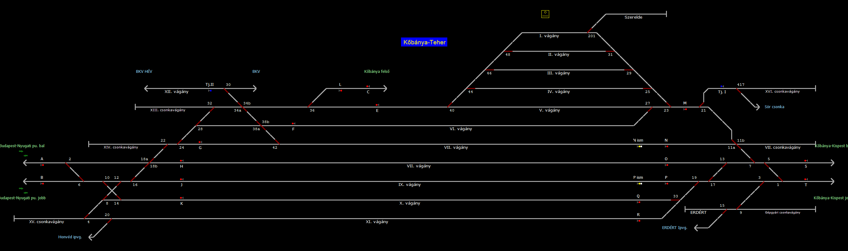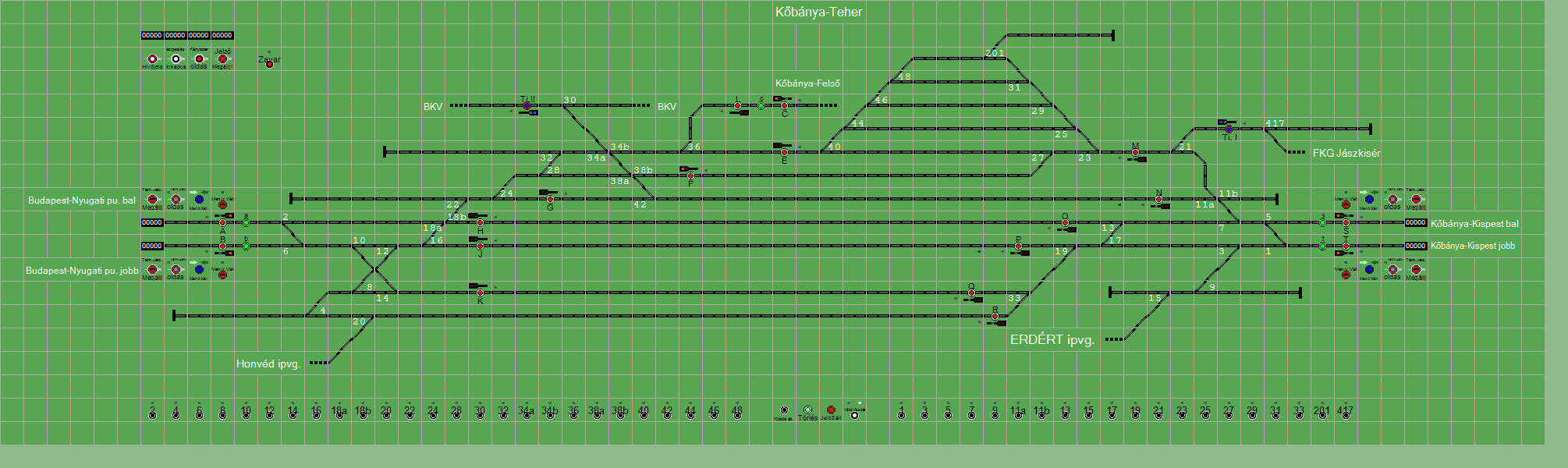 | Biztosító- és jelzőberendezések: | Kép letöltése A TerVez2 Vasútforgalmi Szimulátorban megvalósított állomások eltéréseket mutathatnak a valós állomáshoz képest. |