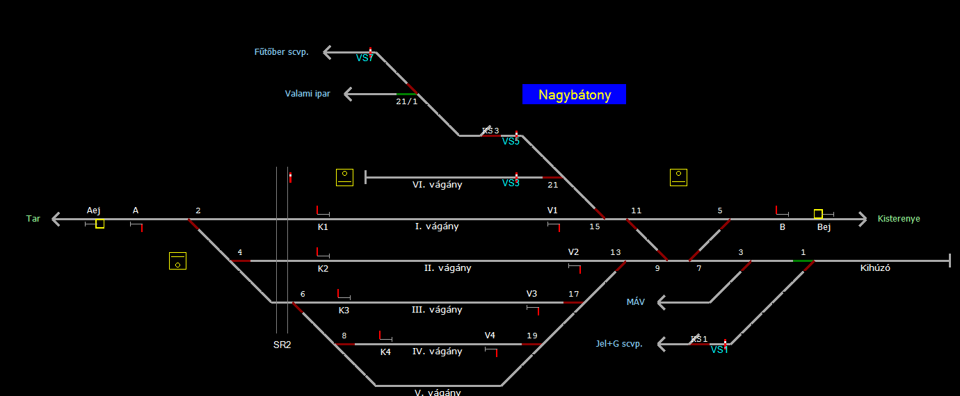 | Biztosító- és jelzőberendezések: | Kép letöltése Kép letöltése Kép letöltése A TerVez2 Vasútforgalmi Szimulátorban megvalósított állomások eltéréseket mutathatnak a valós állomáshoz képest. |