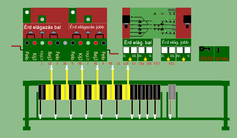 | Biztosító- és jelzőberendezések: | Kép letöltése Kép letöltése Kép letöltése Kép letöltése Kép letöltése A TerVez2 Vasútforgalmi Szimulátorban megvalósított állomások eltéréseket mutathatnak a valós állomáshoz képest. |