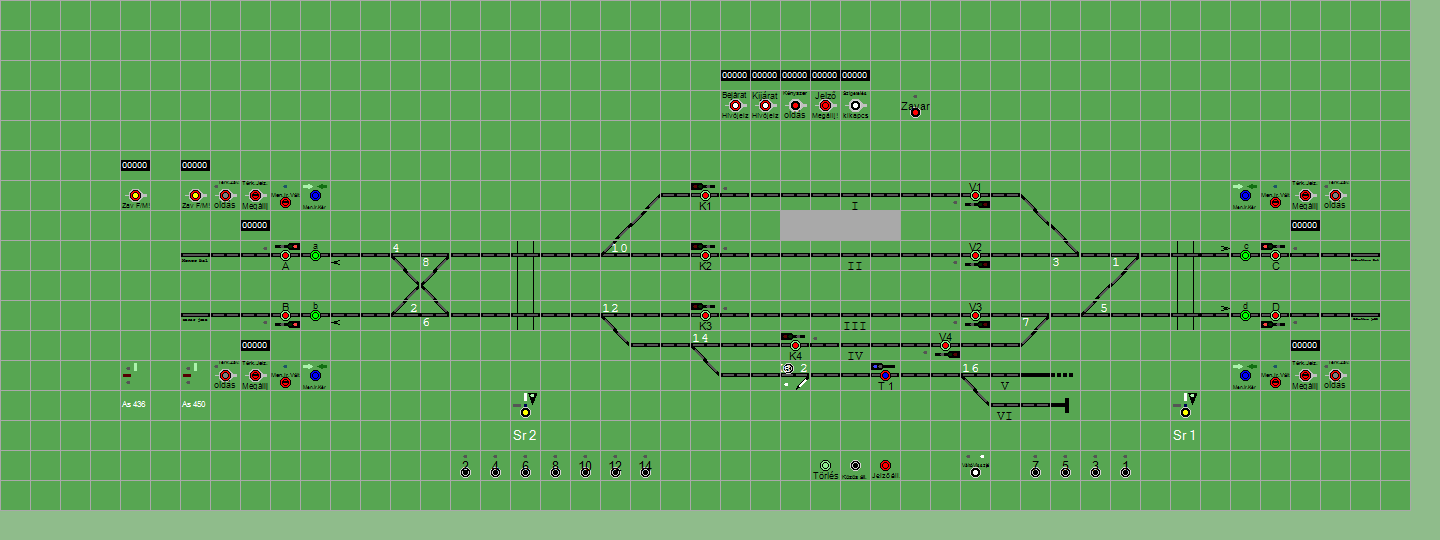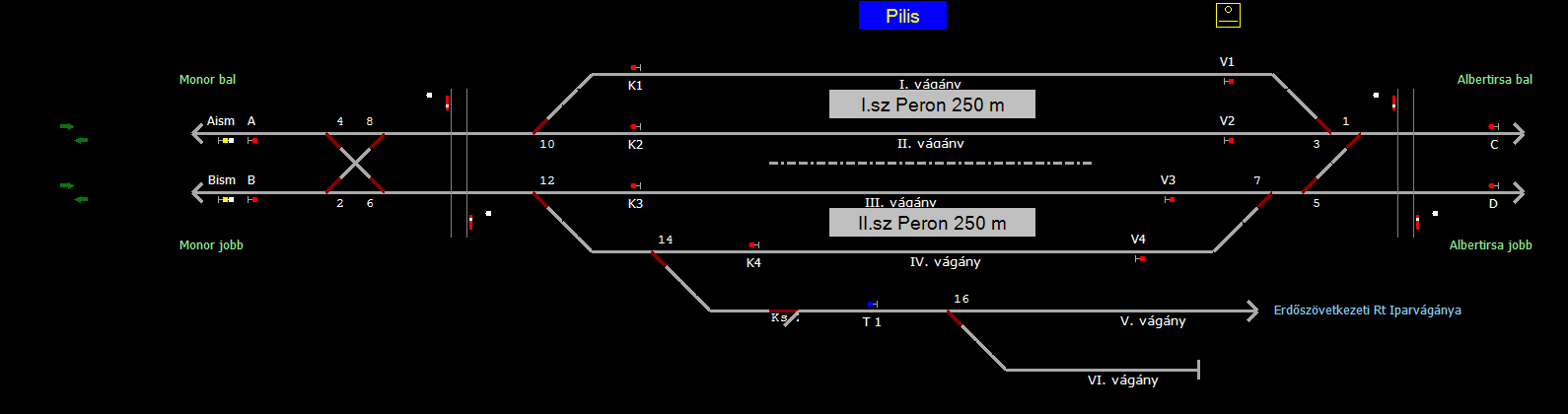 | Biztosító- és jelzőberendezések: | Kép letöltése A TerVez2 Vasútforgalmi Szimulátorban megvalósított állomások eltéréseket mutathatnak a valós állomáshoz képest. |