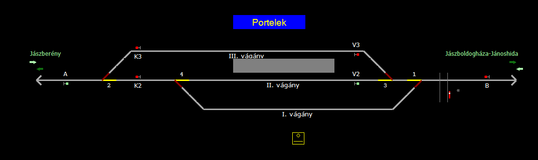 | Biztosító- és jelzőberendezések: | Kép letöltése A TerVez2 Vasútforgalmi Szimulátorban megvalósított állomások eltéréseket mutathatnak a valós állomáshoz képest. |