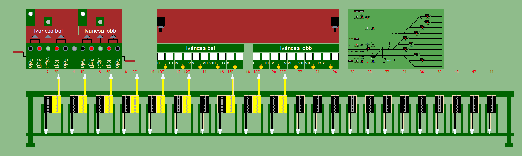 | Biztosító- és jelzőberendezések: | Kép letöltése Kép letöltése Kép letöltése Kép letöltése Kép letöltése Kép letöltése Kép letöltése Kép letöltése Kép letöltése Kép letöltése A TerVez2 Vasútforgalmi Szimulátorban megvalósított állomások eltéréseket mutathatnak a valós állomáshoz képest. |
