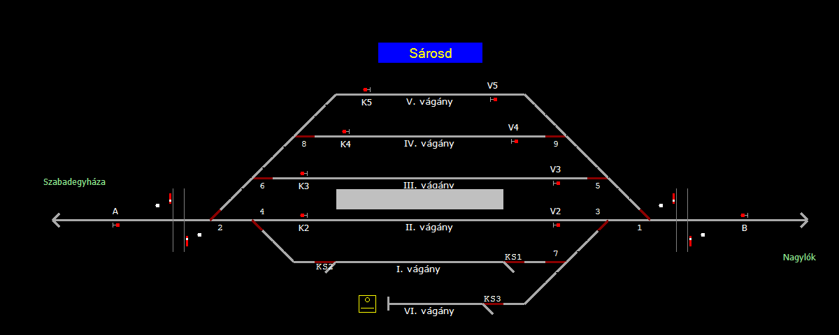 | Biztosító- és jelzőberendezések: | Kép letöltése A TerVez2 Vasútforgalmi Szimulátorban megvalósított állomások eltéréseket mutathatnak a valós állomáshoz képest. |