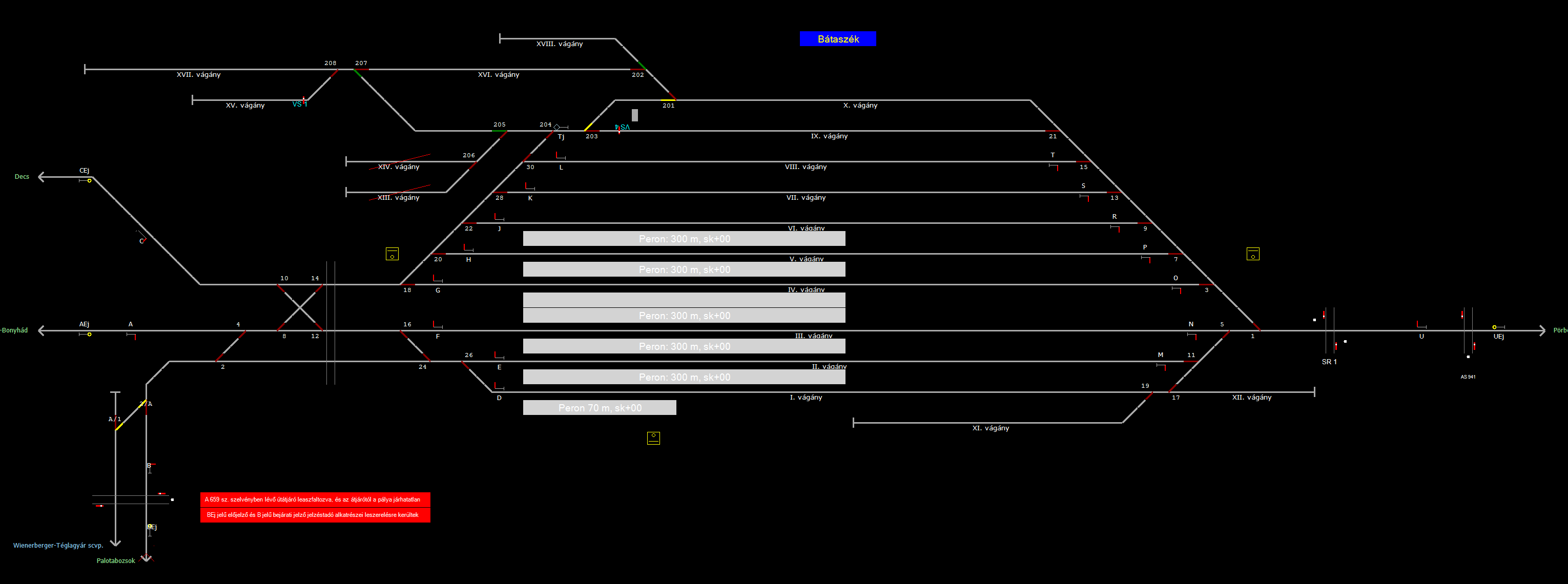 | Helyszínrajzok: | Kép letöltése A TerVez2 Vasútforgalmi Szimulátorban megvalósított állomások eltéréseket mutathatnak a valós állomáshoz képest. |