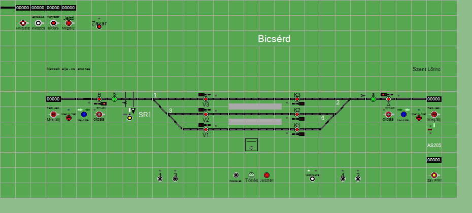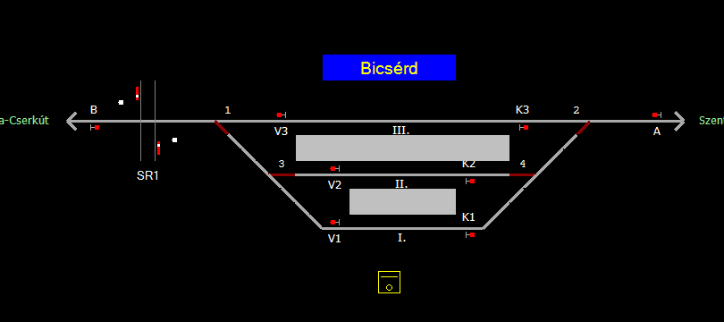 | Biztosító- és jelzőberendezések: | Kép letöltése A TerVez2 Vasútforgalmi Szimulátorban megvalósított állomások eltéréseket mutathatnak a valós állomáshoz képest. |