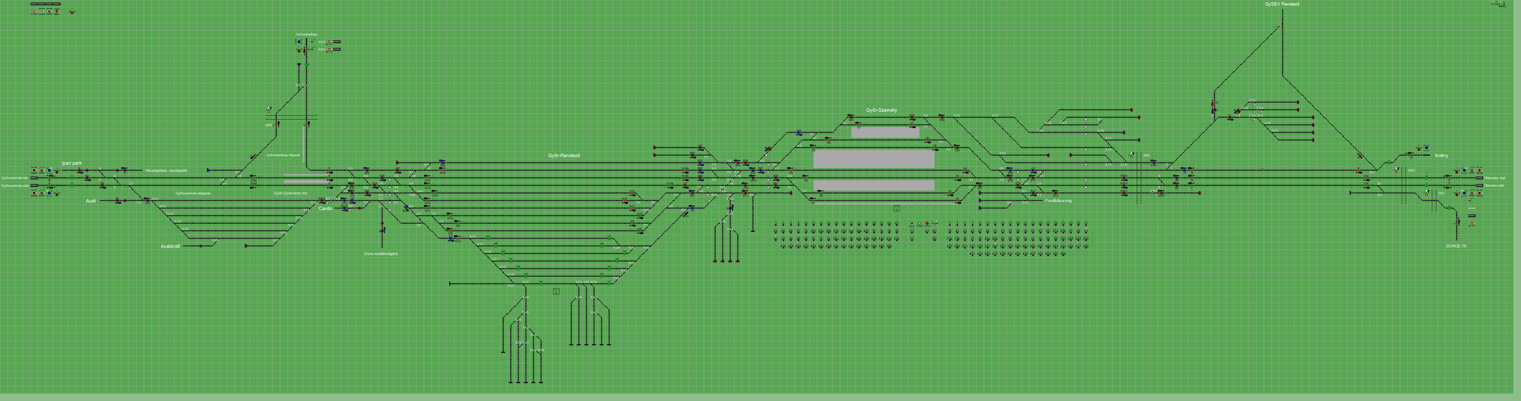 | Biztosító- és jelzőberendezések: | Kép letöltése A TerVez2 Vasútforgalmi Szimulátorban megvalósított állomások eltéréseket mutathatnak a valós állomáshoz képest. |