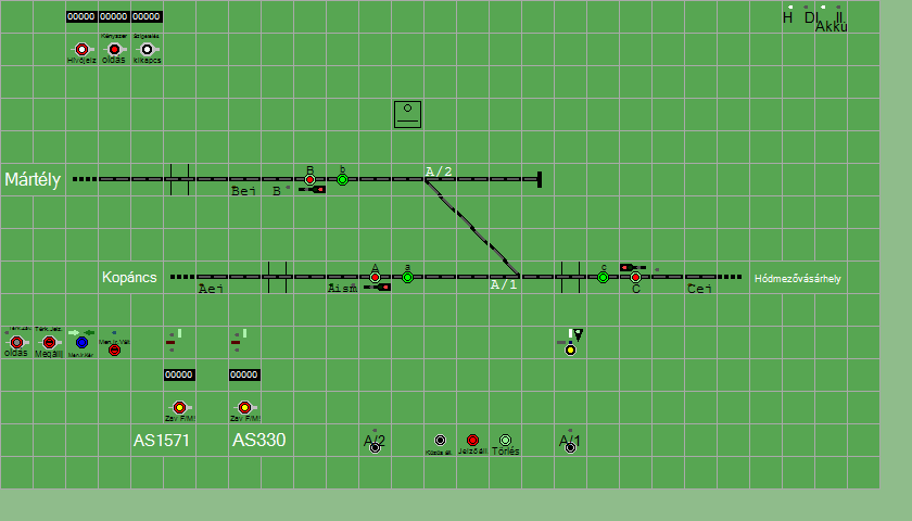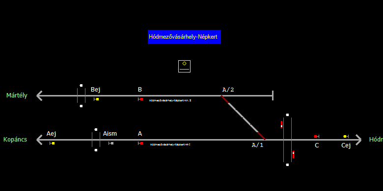 | Biztosító- és jelzőberendezések: | Kép letöltése A TerVez2 Vasútforgalmi Szimulátorban megvalósított állomások eltéréseket mutathatnak a valós állomáshoz képest. |