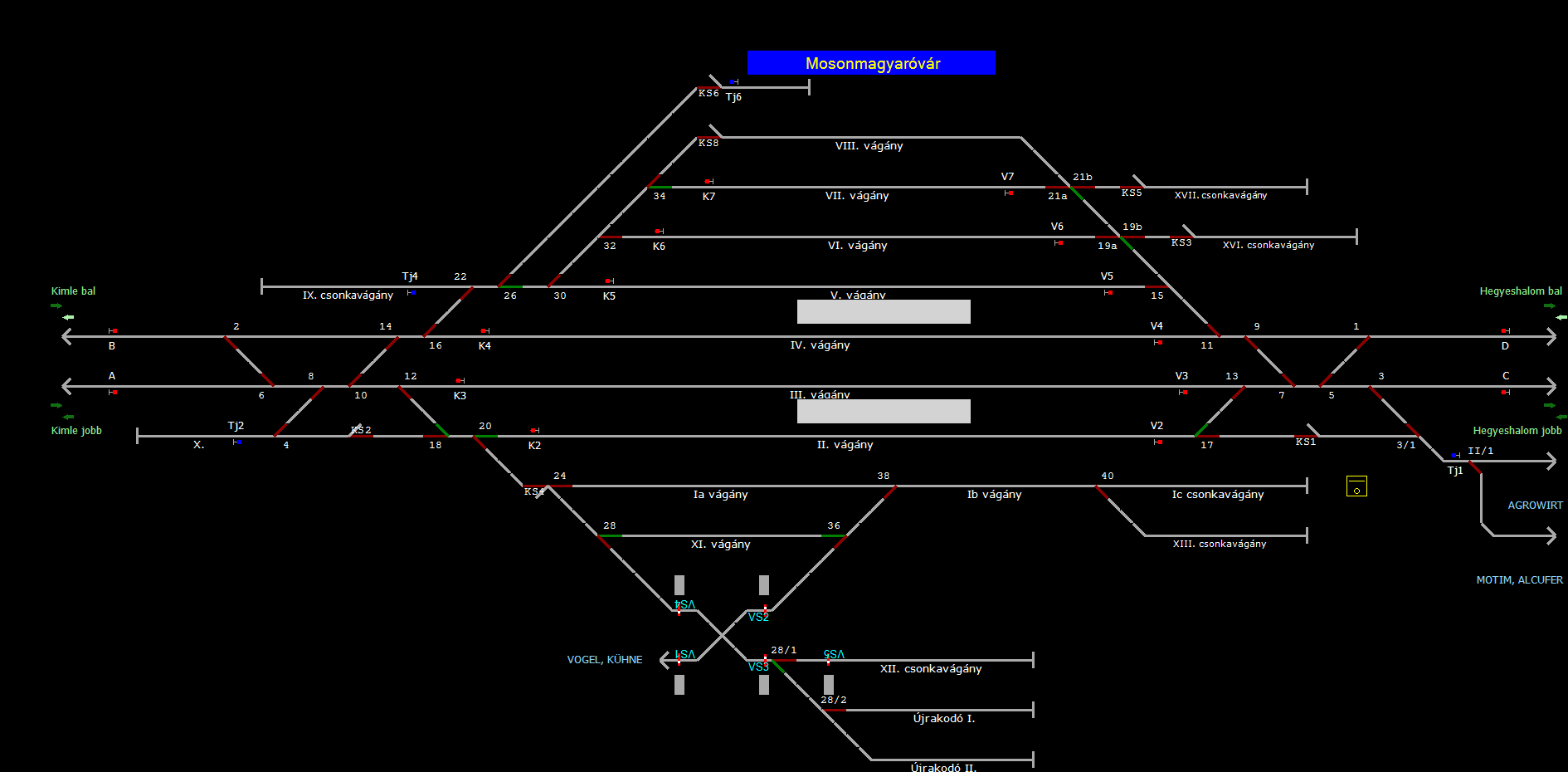 A TerVez2 Vasútforgalmi Szimulátorban megvalósított állomások eltéréseket mutathatnak a valós állomáshoz képest.