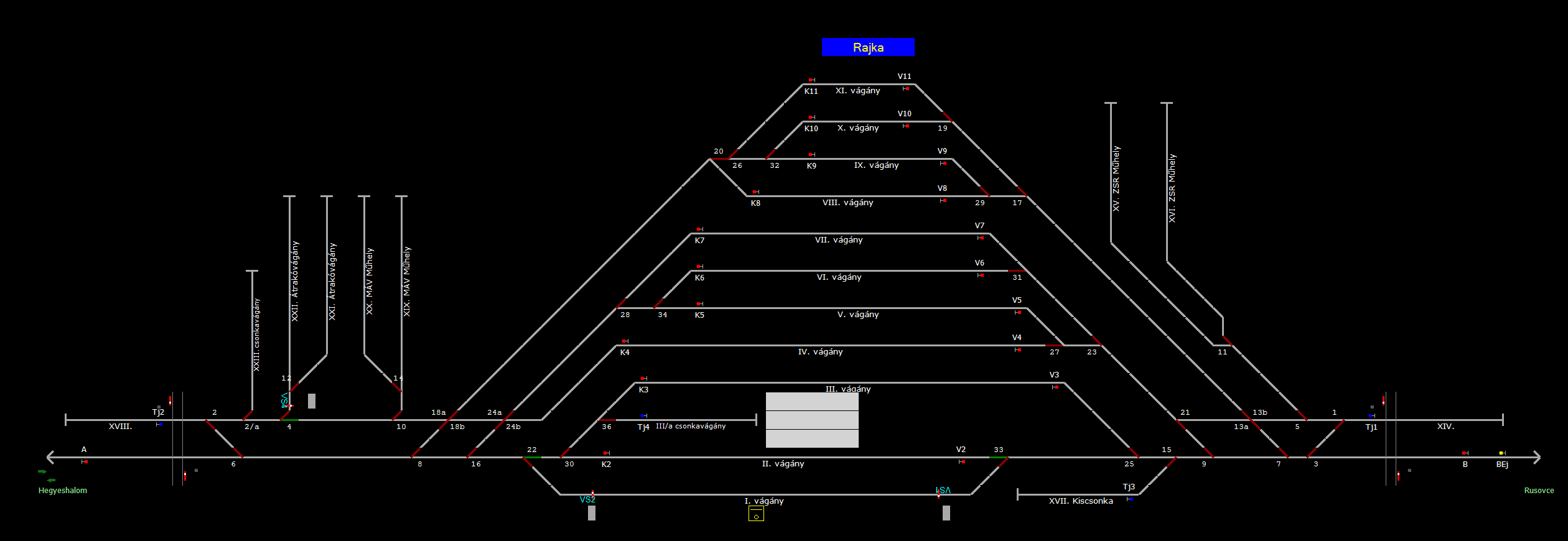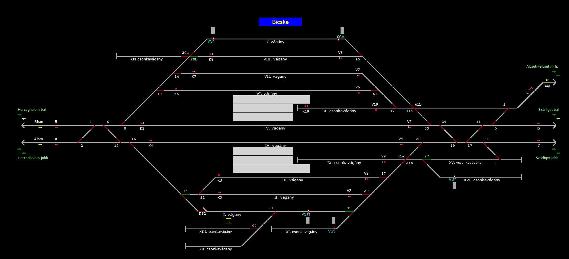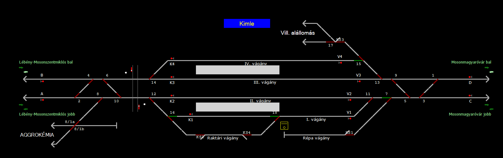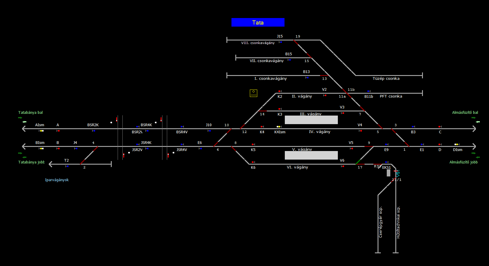 | A TerVez2 Vasútforgalmi Szimulátorban megvalósított állomások eltéréseket mutathatnak a valós állomáshoz képest. |