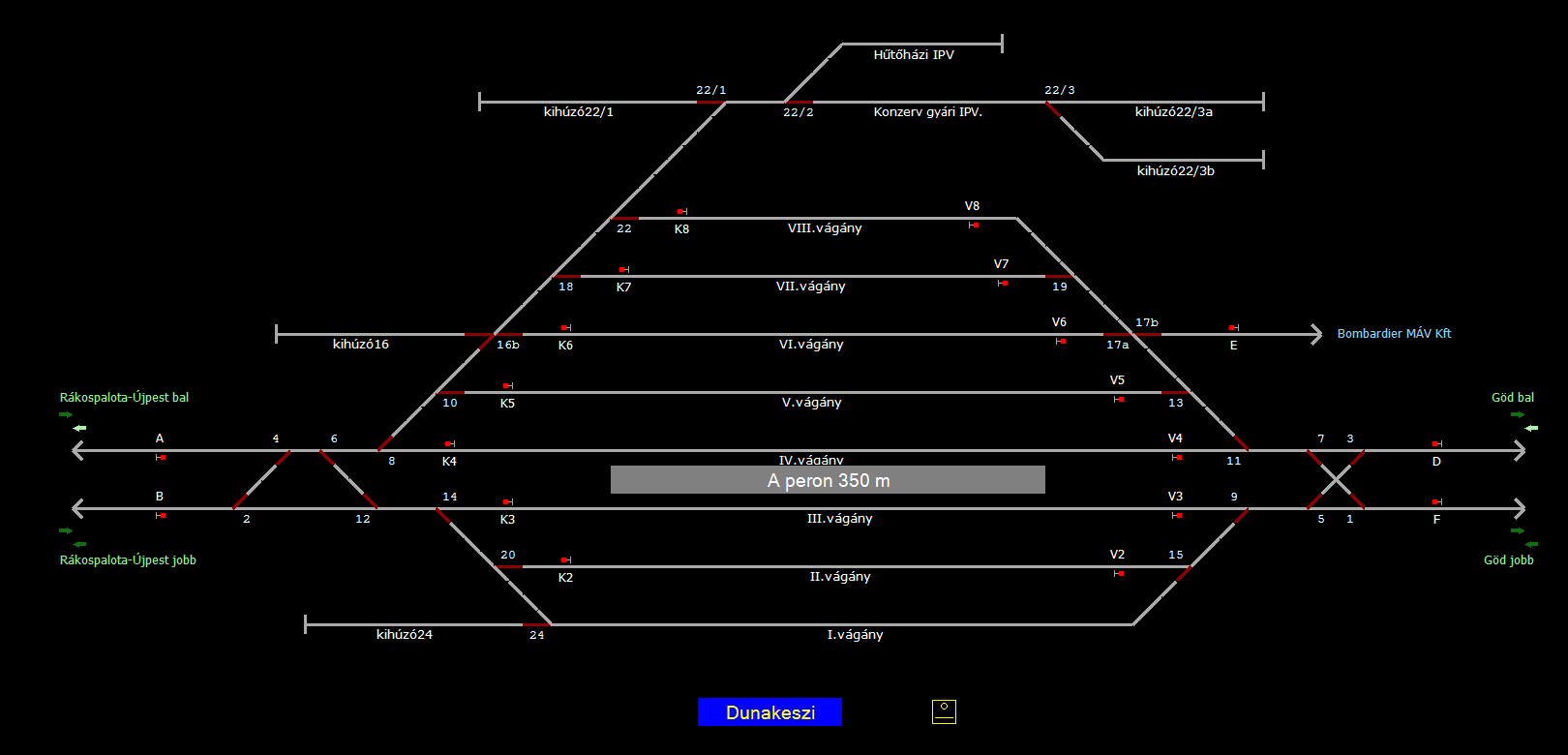 | A TerVez2 Vasútforgalmi Szimulátorban megvalósított állomások eltéréseket mutathatnak a valós állomáshoz képest. |