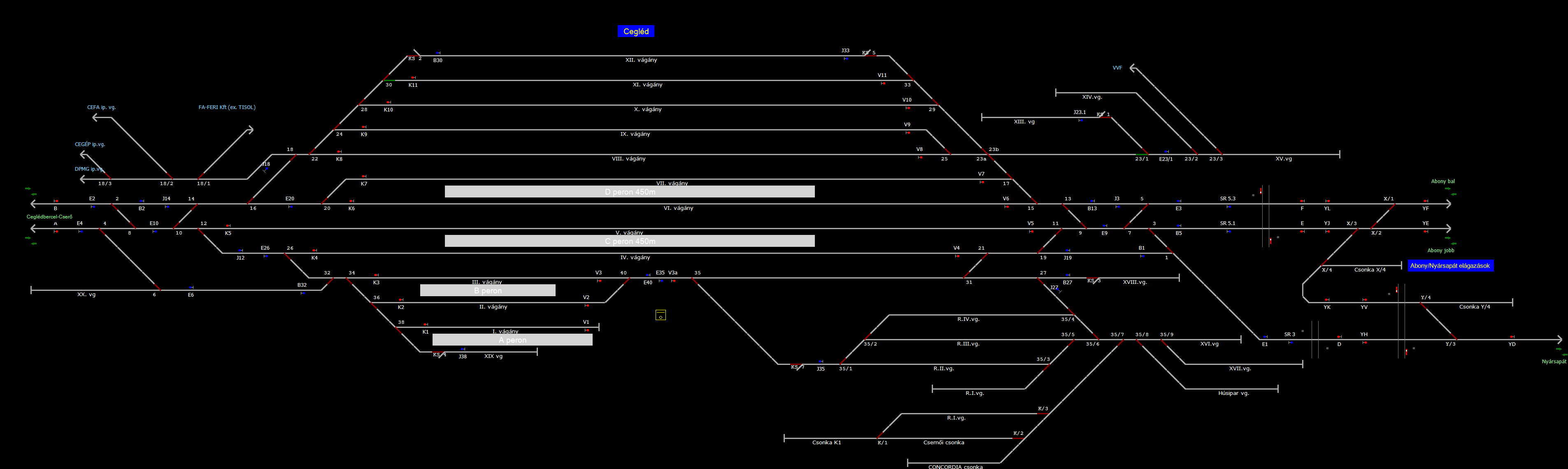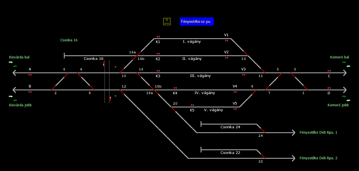 A TerVez2 Vasútforgalmi Szimulátorban megvalósított állomások eltéréseket mutathatnak a valós állomáshoz képest.