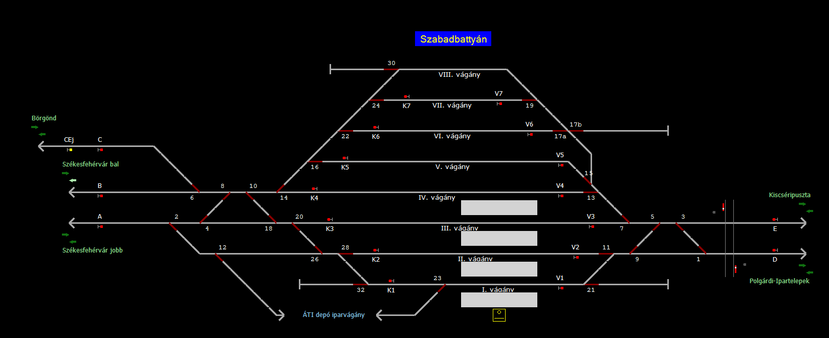 A TerVez2 Vasútforgalmi Szimulátorban megvalósított állomások eltéréseket mutathatnak a valós állomáshoz képest.