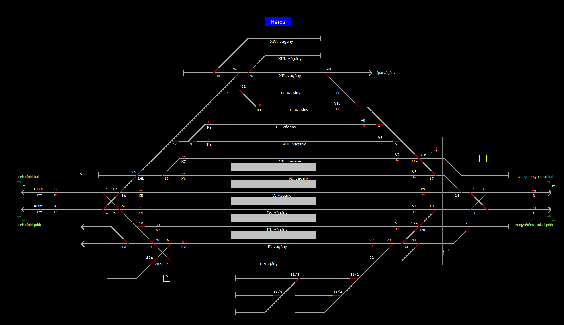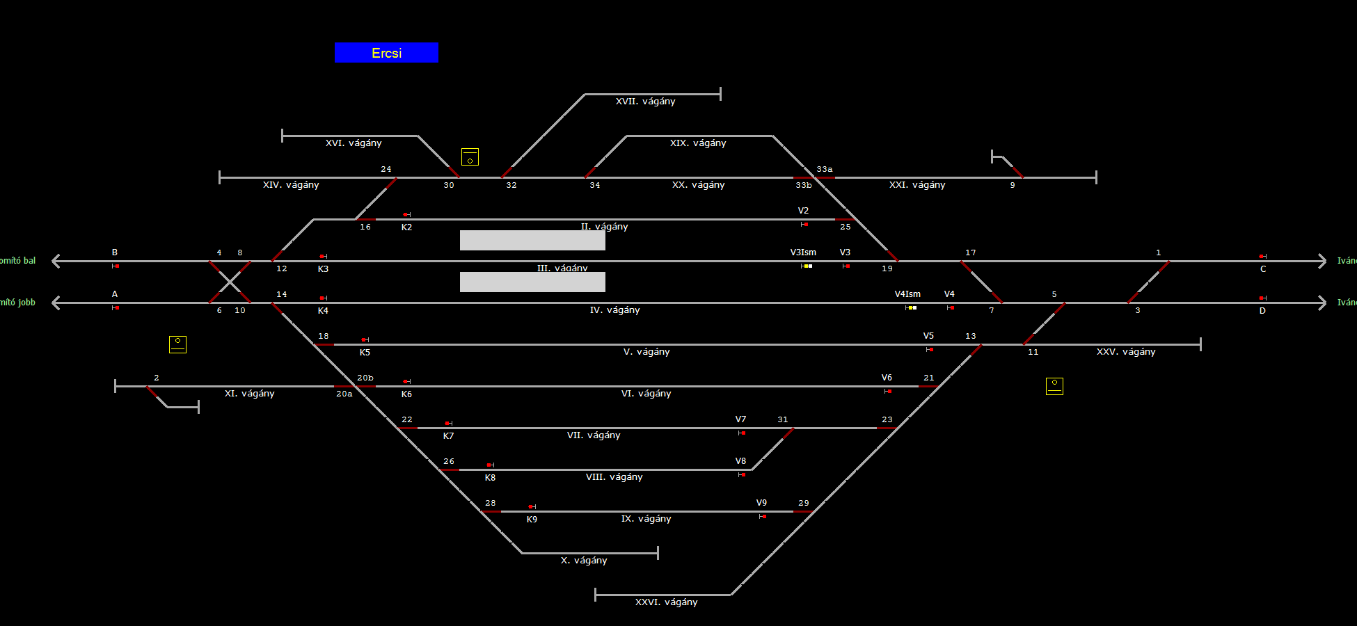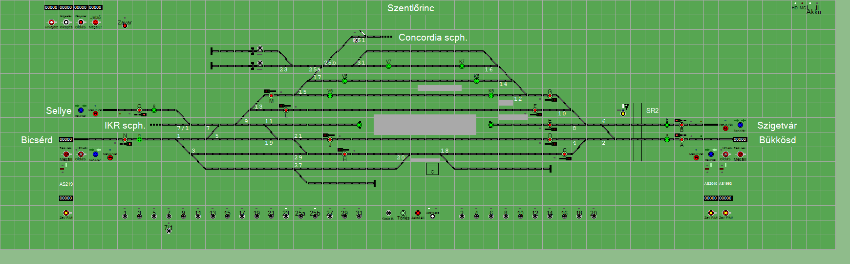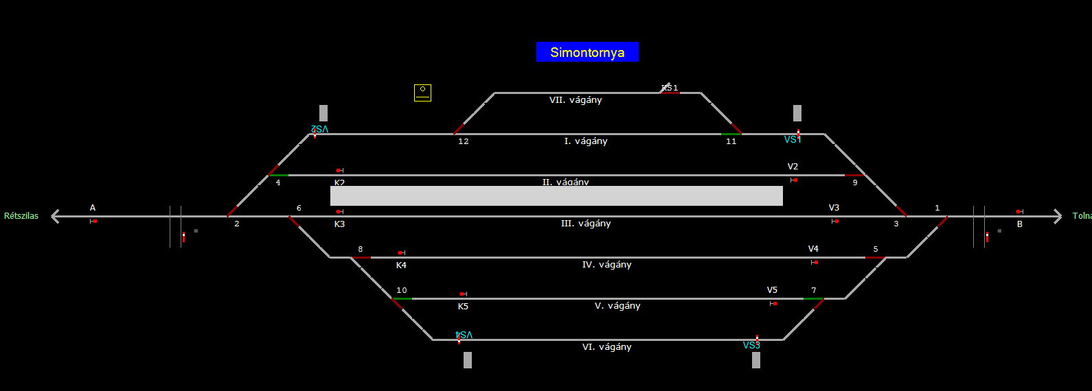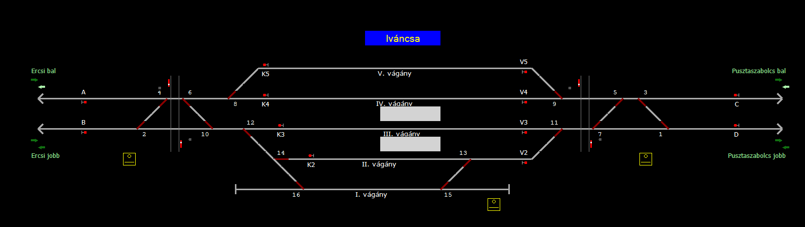 A TerVez2 Vasútforgalmi Szimulátorban megvalósított állomások eltéréseket mutathatnak a valós állomáshoz képest.