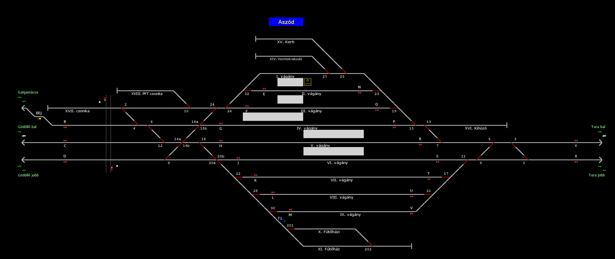 A TerVez2 Vasútforgalmi Szimulátorban megvalósított állomások eltéréseket mutathatnak a valós állomáshoz képest.