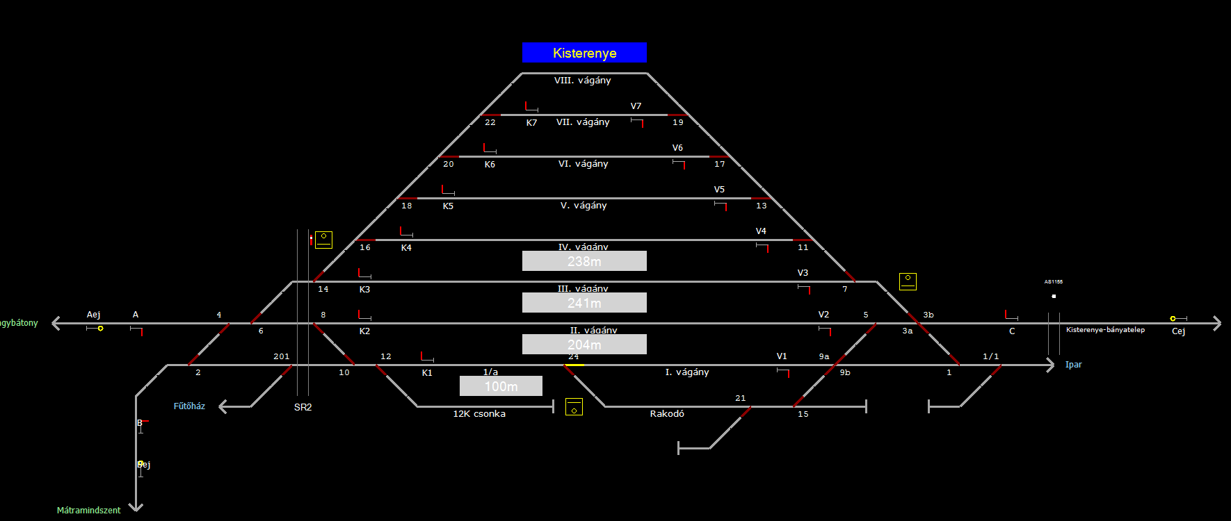 A TerVez2 Vasútforgalmi Szimulátorban megvalósított állomások eltéréseket mutathatnak a valós állomáshoz képest.