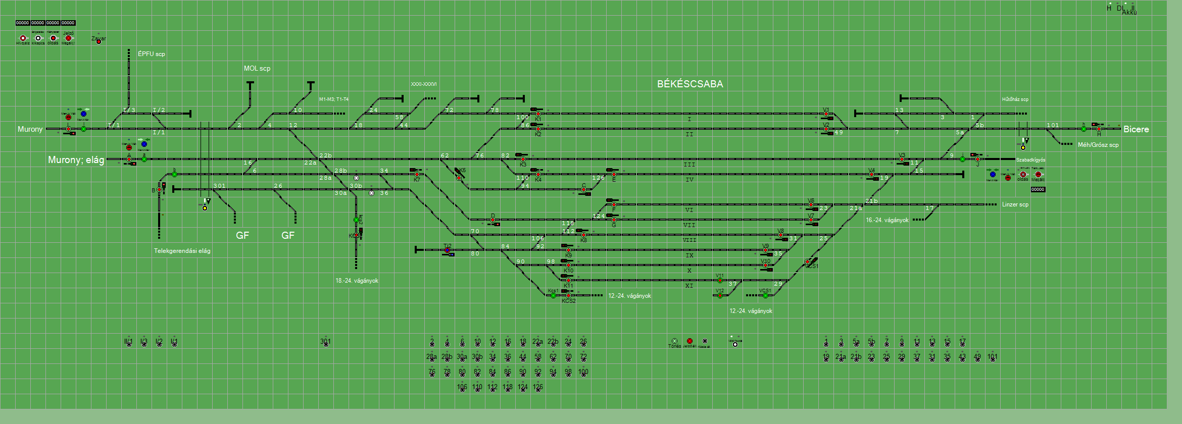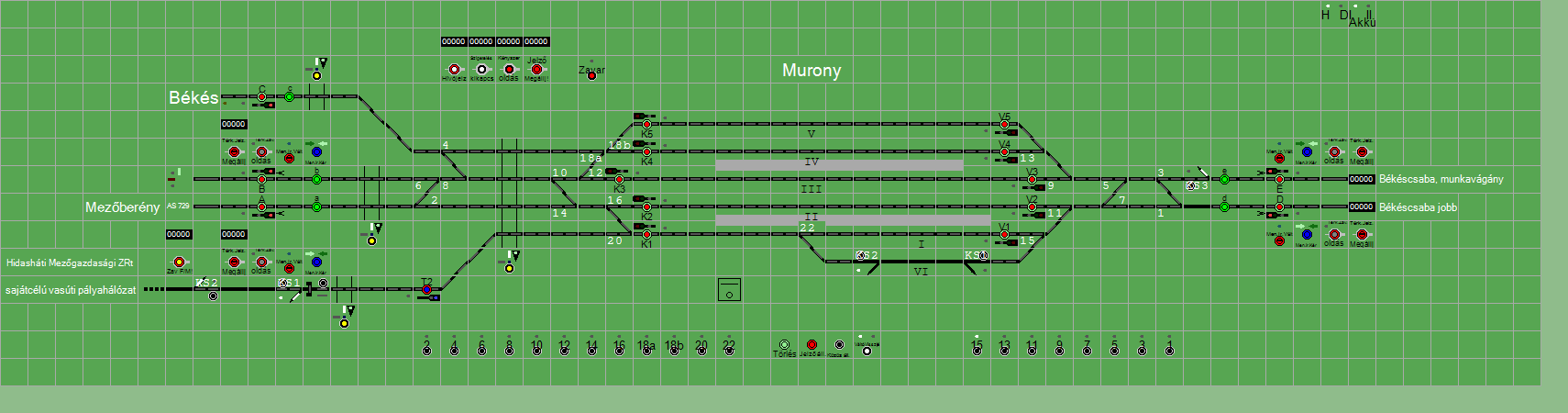 A TerVez2 Vasútforgalmi Szimulátorban megvalósított állomások eltéréseket mutathatnak a valós állomáshoz képest.